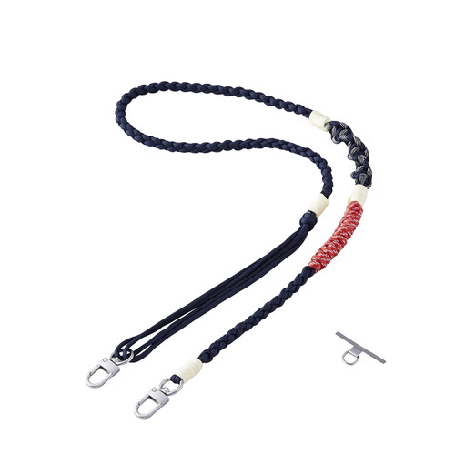 スマホストラップ 編みロープタイプ ショルダー 首掛け 長さ調整可 ストラップホルダーシート付 iPhone/Android対応 落下防止 ブラック