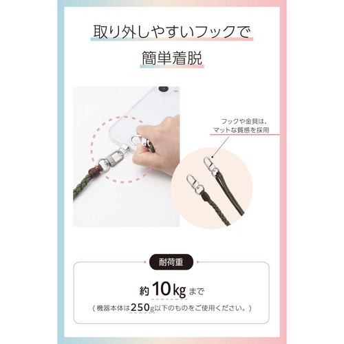 ●取り外しやすいフックを使用しているので、ストラップの着脱が簡単にできます。