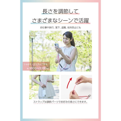 ●両手が空いて身軽になるので、普段のお出かけはもちろん、お仕事や旅行など、さまざまなシーンで活躍。落下、盗難、紛失防止にもなります。