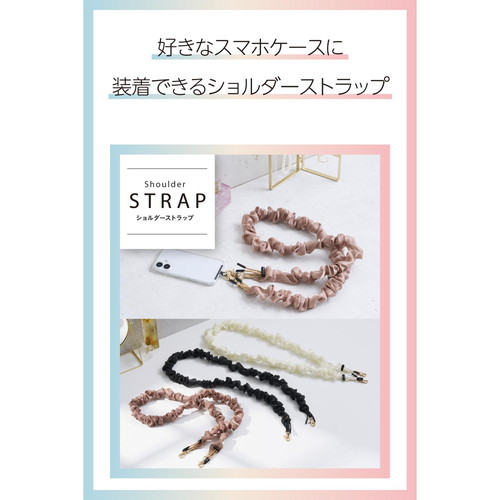 スマホストラップ シュシュ風デザイン 軽量 ショルダー 首掛け 長さ調整可 ストラップホルダーシート付 アイボリー