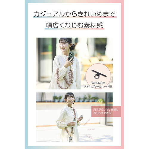 ●両手が空いて身軽になるので、普段のお出かけはもちろん、お仕事や旅行など、さまざまなシーンで活躍。落下、盗難、紛失防止にもなります。