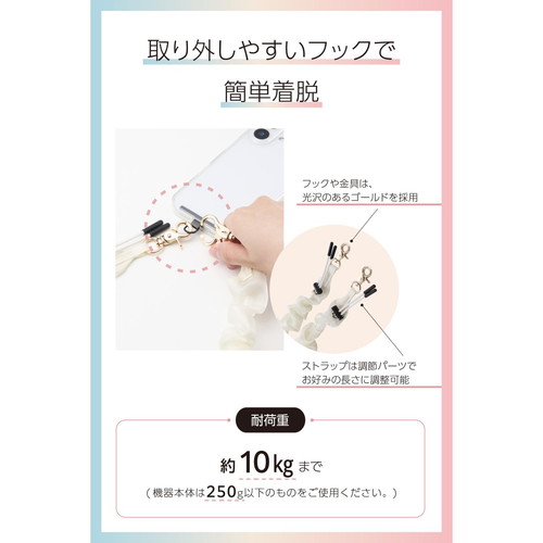 ●取り外しやすいフックを使用しているので、ストラップの着脱が簡単にできます。