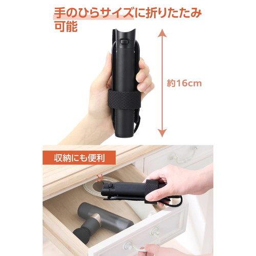 ●スティック部分を回すだけで手のひらサイズに折りたたみ可能。持ち運びにも便利です。