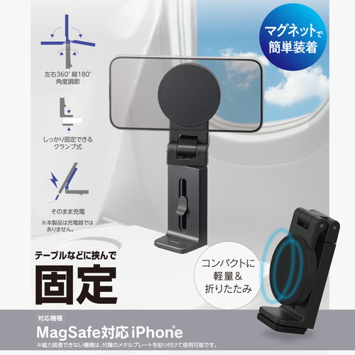 ●付属のメタルプレートをスマホケースや端末に貼り付けることで、MagSafe非対応の機種でも使用可能になります。