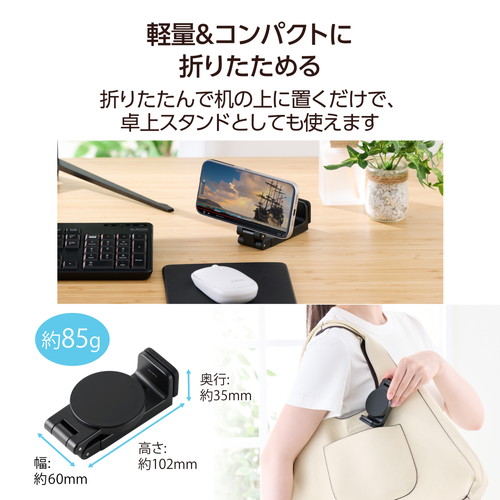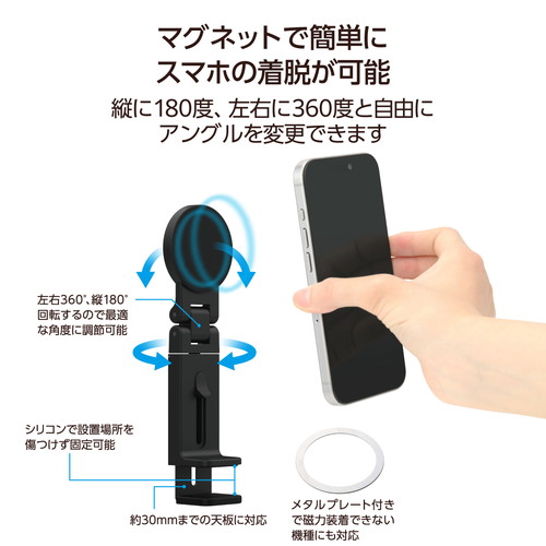 ●マグネットで簡単にスマートフォンの着脱が可能。着信やメッセージなどあった際も、すぐに確認できます。