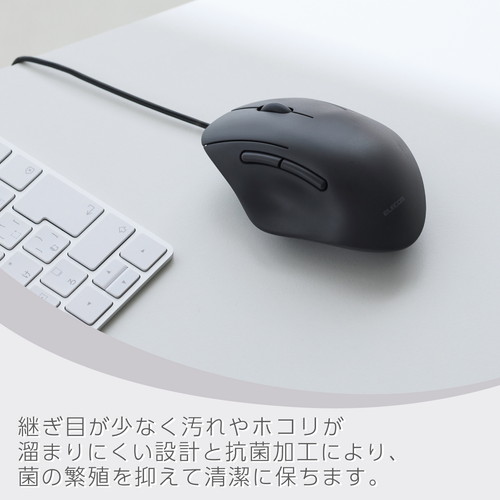 有線 USB マウス 静音 5ボタン エルゴノミクス 抗菌 Mサイズ SHELLPHA ブラック