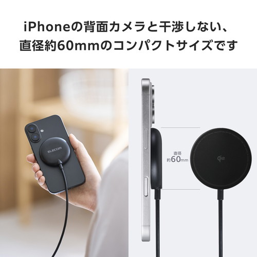 ●iPhoneの背面カメラと干渉しない、直径約60mmのコンパクトサイズです。