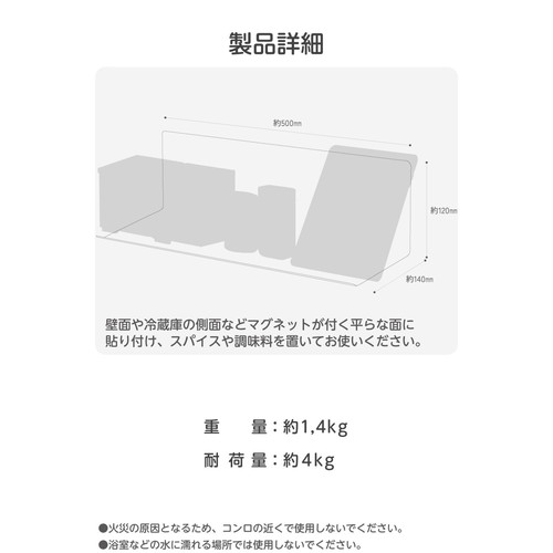 ●壁面や冷蔵庫の側面などにマグネットで簡単に取り付け可能。デッドスペースを有効活用することで、キッチンの作業スペースが広がります。