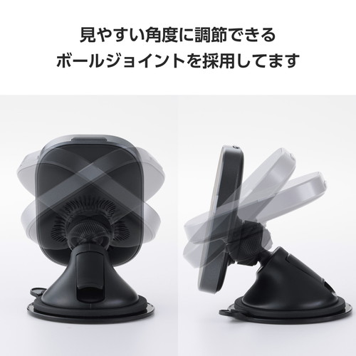 ●自由自在に角度を調節できるボールジョイントを採用しているので、スマートフォンのナビ画面などを見やすい角度で設置できます。
