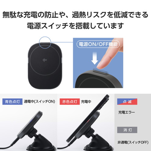 ●異物検知機能を搭載しており、本製品のコイル部分とスマートフォンの間にコインなどの異物があれば検知するため、安全にご利用いただけます。