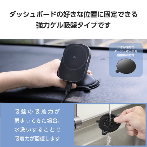 ●浅めのシボ(レザー調の加工面)であれば、ダッシュボードの好きな位置にしっかり固定できる、強力ゲル吸盤タイプです。
