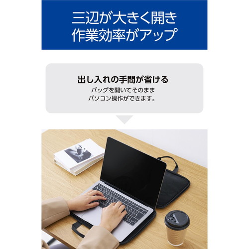 パソコンケース 13.3インチ フルオープン PC操作可 撥水 軽量 スリム ハンドル付き 前面収納ポケット ブラック