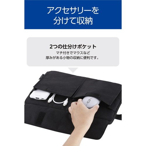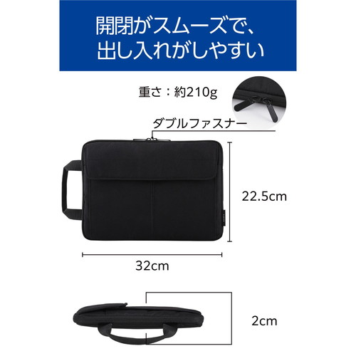 パソコンケース 13.3インチ 撥水 軽量 スリム ハンドル付き 前面仕分けポケット ダブルファスナー ブラック