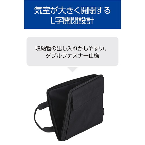 ●気室が大きく開閉して収納物の出し入れがしやすい、ダブルファスナー仕様のL字開閉設計です。