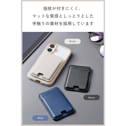 【メール便での発送商品】MagSafe カードケース iPhone用 2枚収納 レザー風 薄型 マグネット脱着 オープンポケット スマホ カード入れ ブラック