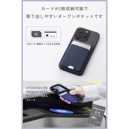 ●スマートフォンとICカードの干渉を防ぐ、磁気防止シートを付属。改札もスムーズに通れます。
