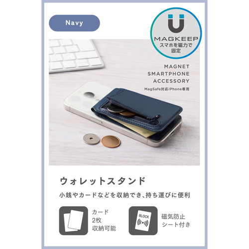 【メール便での発送商品】MagSafe カードウォレット スタンド iPhone用 磁気防止シート付 2枚収納+小銭ポケット 財布代用 マット素材 ベージュ