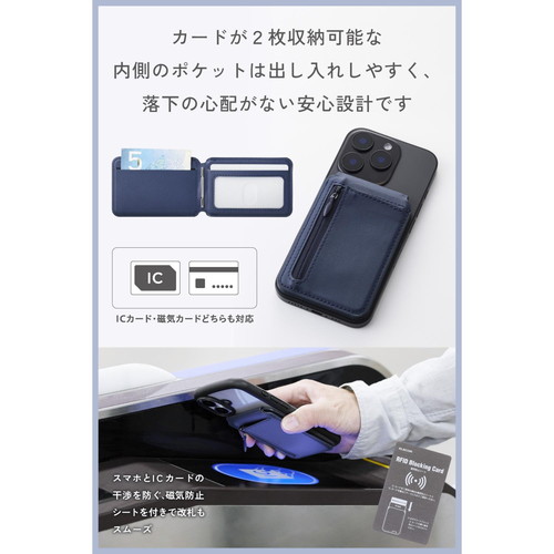 ●スマートフォンとICカードの干渉を防ぐ、磁気防止シートを付属。改札もスムーズに通れます。