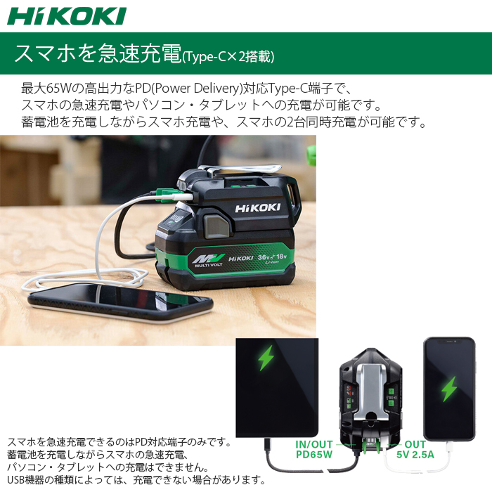 ●最大65Wの高出力なPD(Power Delivery)対応Type-C端子でスマホの急速充電やパソコン・タブレットへの充電が可能です。
