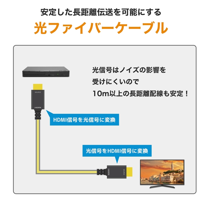 ●※ケーブル部分への著しい負荷や衝撃は、光ファイバーの破損に繋がります。取り扱いの際は十分にご注意ください。