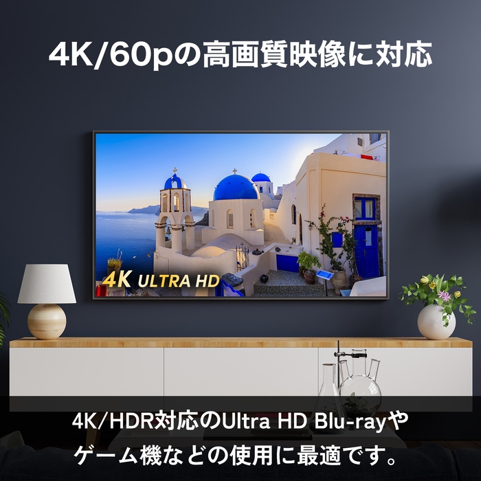 ●18Gbps高速伝送対応 高品質な映像と音声を忠実に伝送します。4K・HDR対応デバイスとの接続に最適なケーブルです。