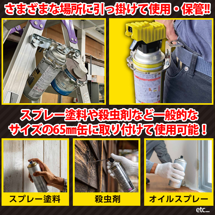 ●スプレー塗装や殺虫剤など一般的なサイズの65mm缶に取り付けて使用可能です。