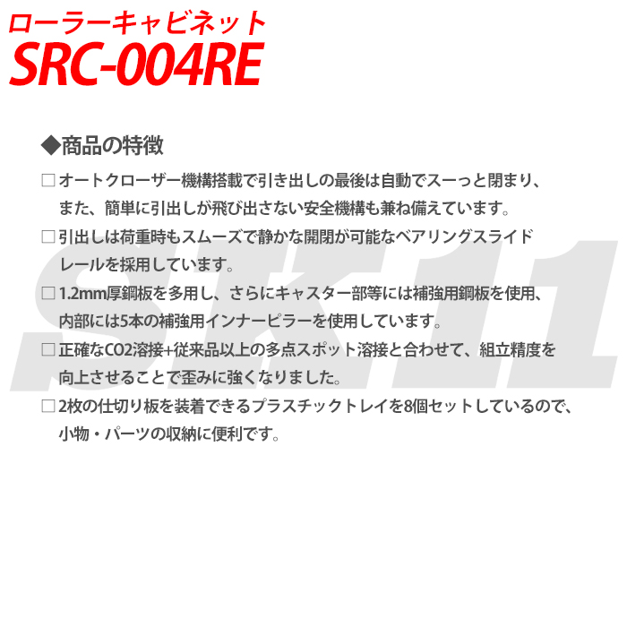 □ 1.2mm厚鋼板を多用し、さらにキャスター部等には補強用鋼板を使用、内部には5本の補強用インナーピラーを使用しています。