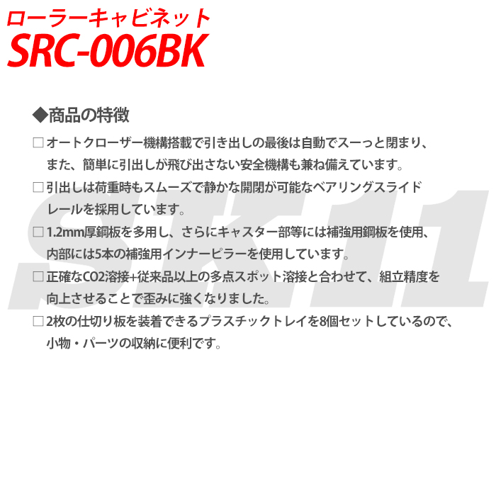 □ 1.2mm厚鋼板を多用し、さらにキャスター部等には補強用鋼板を使用、内部には5本の補強用インナーピラーを使用しています。