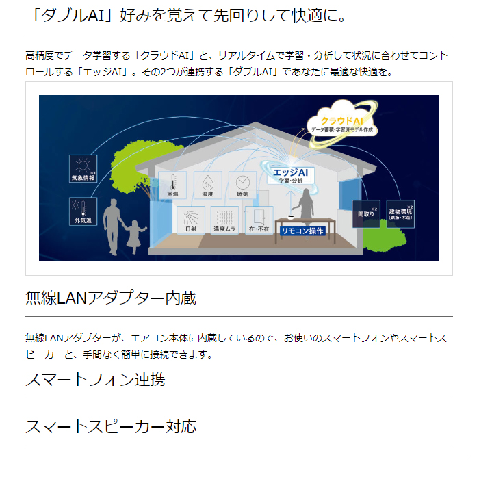 ●無線LANアダプター内蔵で、お使いのスマートフォンやスマートスピーカーと、手間なく簡単に接続