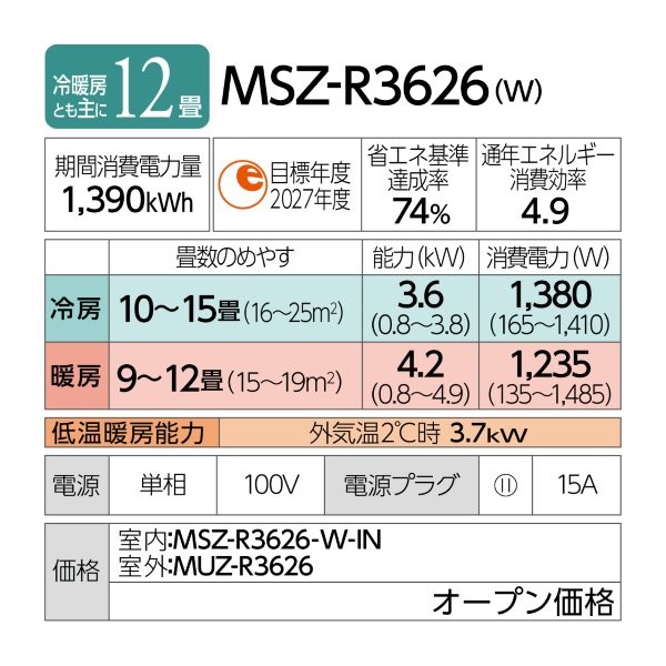 | 商品型番/製品番号 | MSZ-R3626-W |