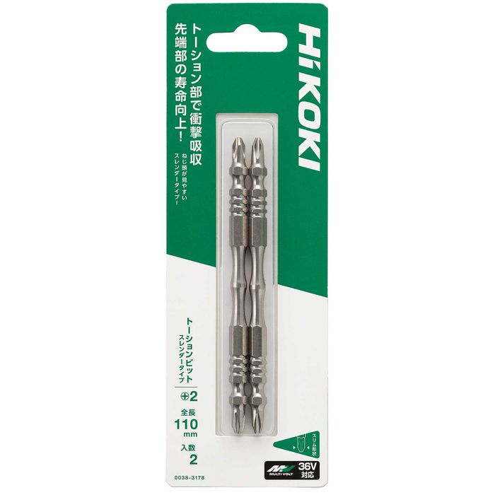 HiKOKI プラスビット 110mm 2本入 トーション(スレンダー) 対応ねじサイズNo.2 0038-3178