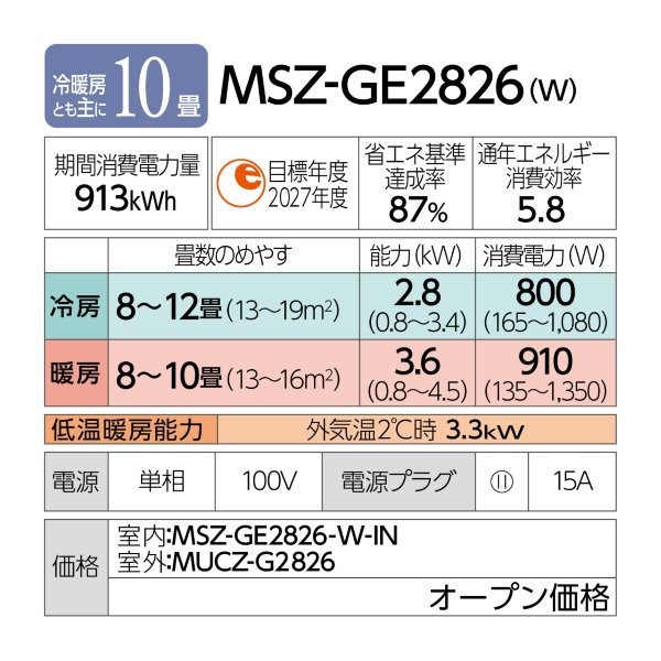 | 商品型番/製品番号 | MSZ-GE2826-W |
