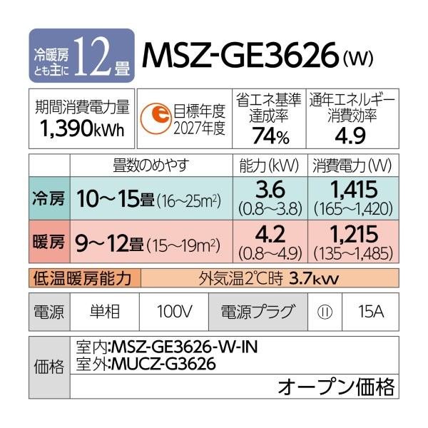 | 商品型番/製品番号 | MSZ-GE3626-W |
