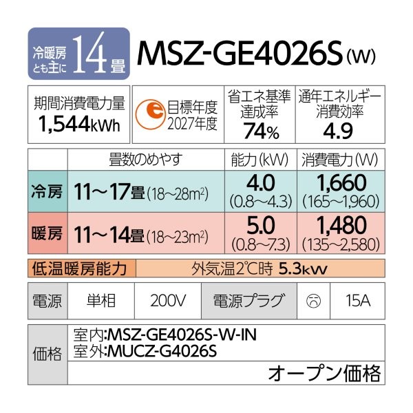 | 商品型番/製品番号 | MSZ-GE4026S-W |
