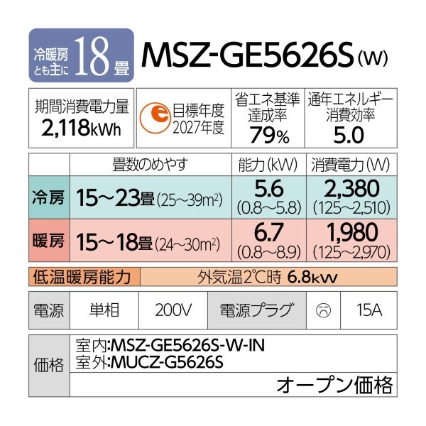 | 商品型番/製品番号 | MSZ-GE5626S-W |