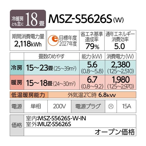| 商品型番/製品番号 | MSZ-S5626S-W |