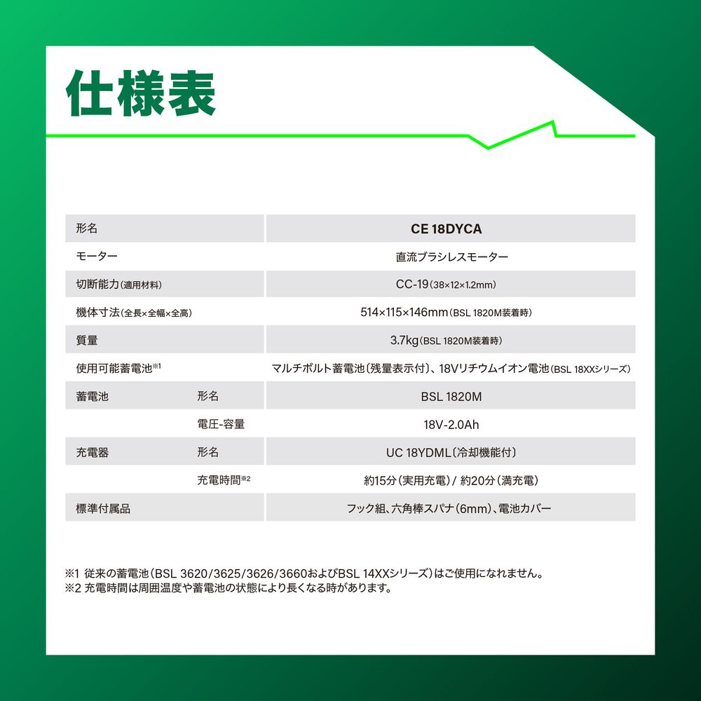 ●CC-19 約300カット (BSL1820M使用時)