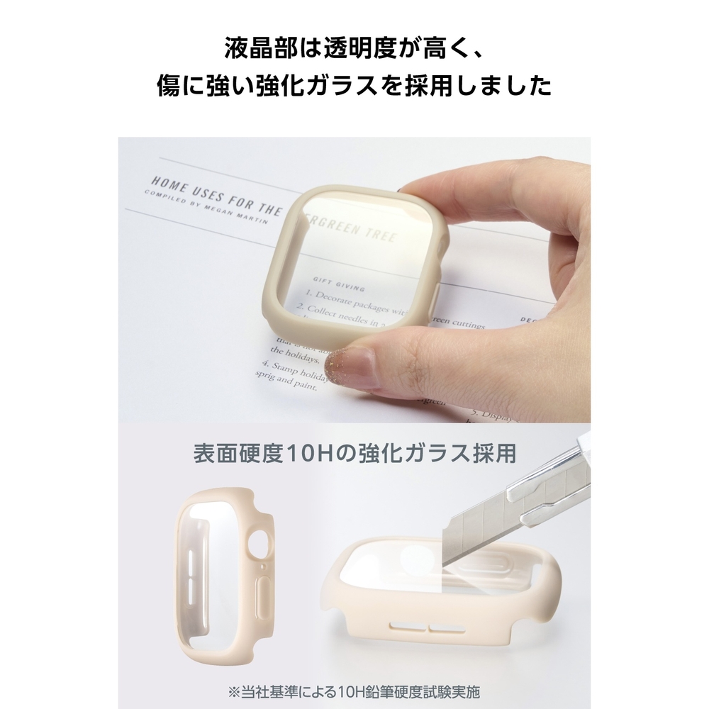 ■画面の視認性に優れる高透明なガラスと、しなやかで弾力性のあるTPU(熱可塑性ポリウレタン)樹脂で、端末を傷や汚れから守るApple Watch用TOUGH SLIM LITEケースです。 ■TPU(熱可塑性ポリウレタン)素材とガラスの2重構造で、Apple Watchの画面および側面部を保護します。 ■画面保護部には、透明度が高く、傷に強い強化ガラスを採用しています。 ■表面硬度10Hの強化ガラス採用により、保護ガラス表面の傷を防止します。 ■※当社基準による鉛筆硬度試験での実力値です。 ■指紋・皮脂汚れが付きにくく、残った場合でも簡単に拭き取れる指紋防止加工を施しています。 ■特殊な飛散防止設計により、万が一割れてしまった際にもガラス片が飛散することなく、高い安全性を実現しています。 ■耐久性に優れ、しなやかな弾力性のあるTPU(熱可塑性ポリウレタン)素材を使い、側面部を覆うように保護します。 ■バンドが装着されたままでも、ケースを簡単に着脱できます。 ■ケースをApple Watchに装着したままで画面の確認、本体の操作、各種ボタン操作、純正の磁気充電ケーブルへの設置が可能です。 ■MIL規格に準拠した1.22mからの落下テストをクリアしています(ただし、全ての状態において無破損・無故障を保証するものではありません)。