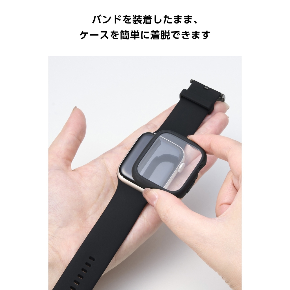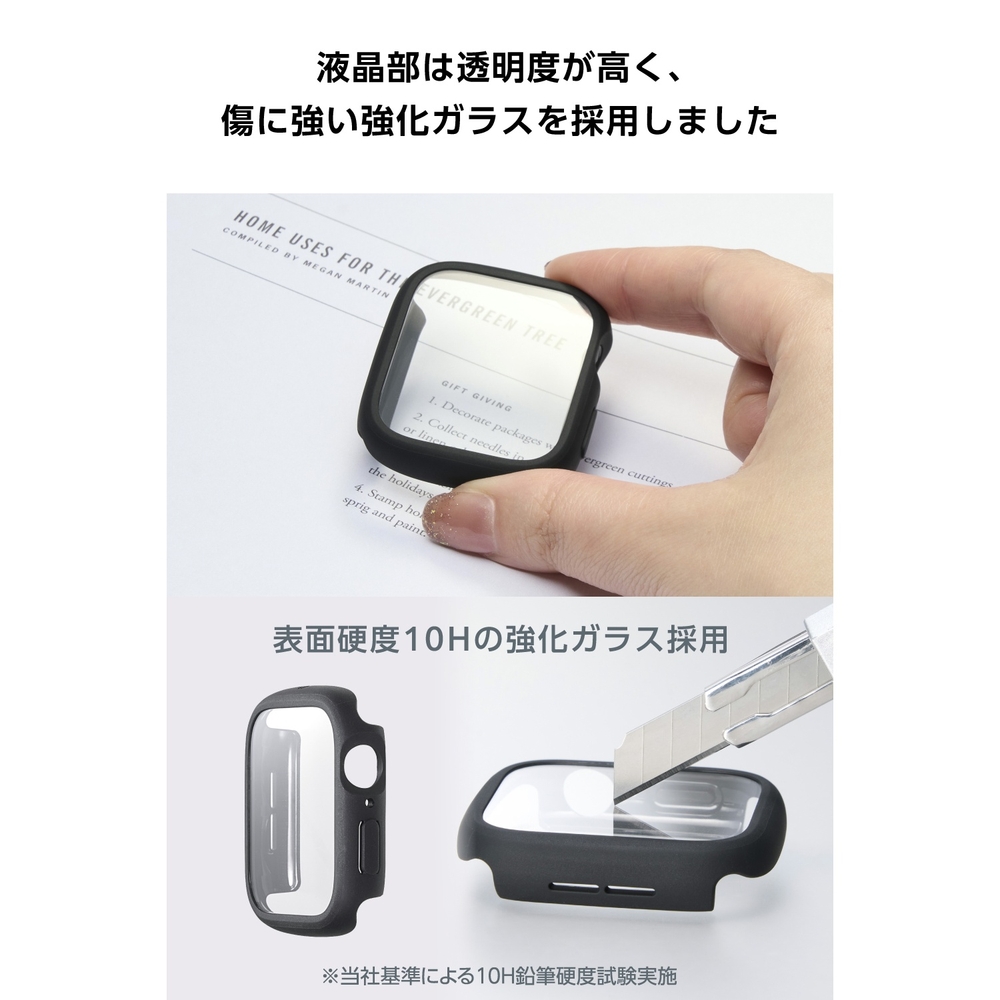 ■画面の視認性に優れる高透明なガラスと、しなやかで弾力性のあるTPU(熱可塑性ポリウレタン)樹脂で、端末を傷や汚れから守るApple Watch用TOUGH SLIM LITEケースです。 ■TPU(熱可塑性ポリウレタン)素材とガラスの2重構造で、Apple Watchの画面および側面部を保護します。 ■画面保護部には、透明度が高く、傷に強い強化ガラスを採用しています。 ■表面硬度10Hの強化ガラス採用により、保護ガラス表面の傷を防止します。 ■※当社基準による鉛筆硬度試験での実力値です。 ■指紋・皮脂汚れが付きにくく、残った場合でも簡単に拭き取れる指紋防止加工を施しています。 ■特殊な飛散防止設計により、万が一割れてしまった際にもガラス片が飛散することなく、高い安全性を実現しています。 ■耐久性に優れ、しなやかな弾力性のあるTPU(熱可塑性ポリウレタン)素材を使い、側面部を覆うように保護します。 ■バンドが装着されたままでも、ケースを簡単に着脱できます。 ■ケースをApple Watchに装着したままで画面の確認、本体の操作、各種ボタン操作、純正の磁気充電ケーブルへの設置が可能です。 ■MIL規格に準拠した1.22mからの落下テストをクリアしています(ただし、全ての状態において無破損・無故障を保証するものではありません)。