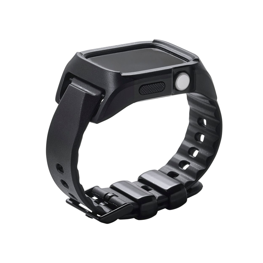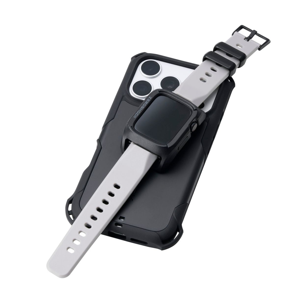 ■端末を不意の衝撃や傷、汚れから守る。強じんなポリカーボネート素材としなやかで弾力性のあるTPU(熱可塑性ポリウレタン)素材によるデュアルストラクチャー(2重構造)を採用した、Apple Watch用ZEROSHOCKケースです。 ■フレーム部を凸形状にすることで画面への不意の接触を防ぎ、柔軟なTPU(熱可塑性ポリウレタン)素材の本体部が衝撃を緩和します。 ■側面の操作部を保護し、快適な操作性を保ちながら端末を守ります。 ■サイドボタンは別パーツを使うことで操作性を保ちつつ保護しています。 ■ケースからバンドの下をくぐるように伸びているセンサーガードは、端末の重要なセンサーを保護するための形状になっています。 ■ケースをApple Watchに装着したままで画面の確認、本体の操作、各種ボタン操作、純正の磁気充電ケーブルへの設置が可能です。 ■MIL規格に準拠した1.22mからの落下テストをクリアしています(ただし、全ての状態において無破損・無故障を保証するものではありません)。