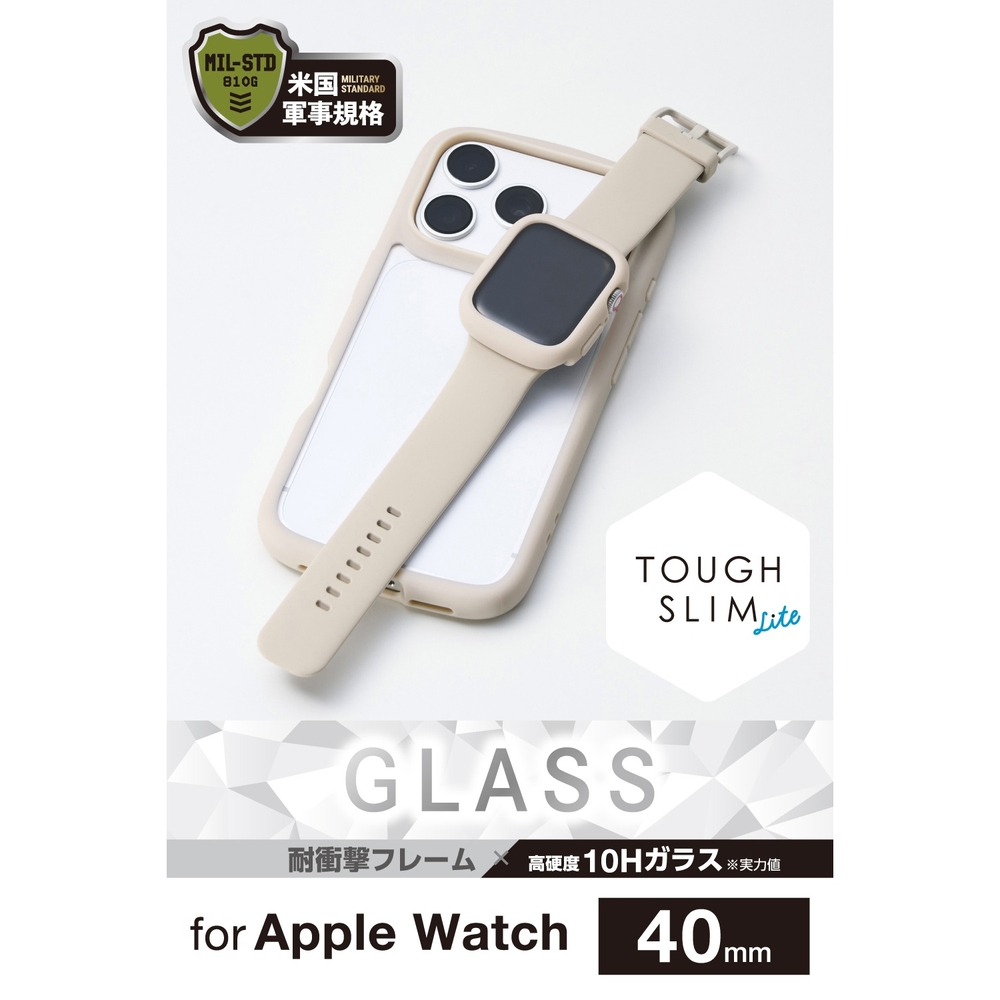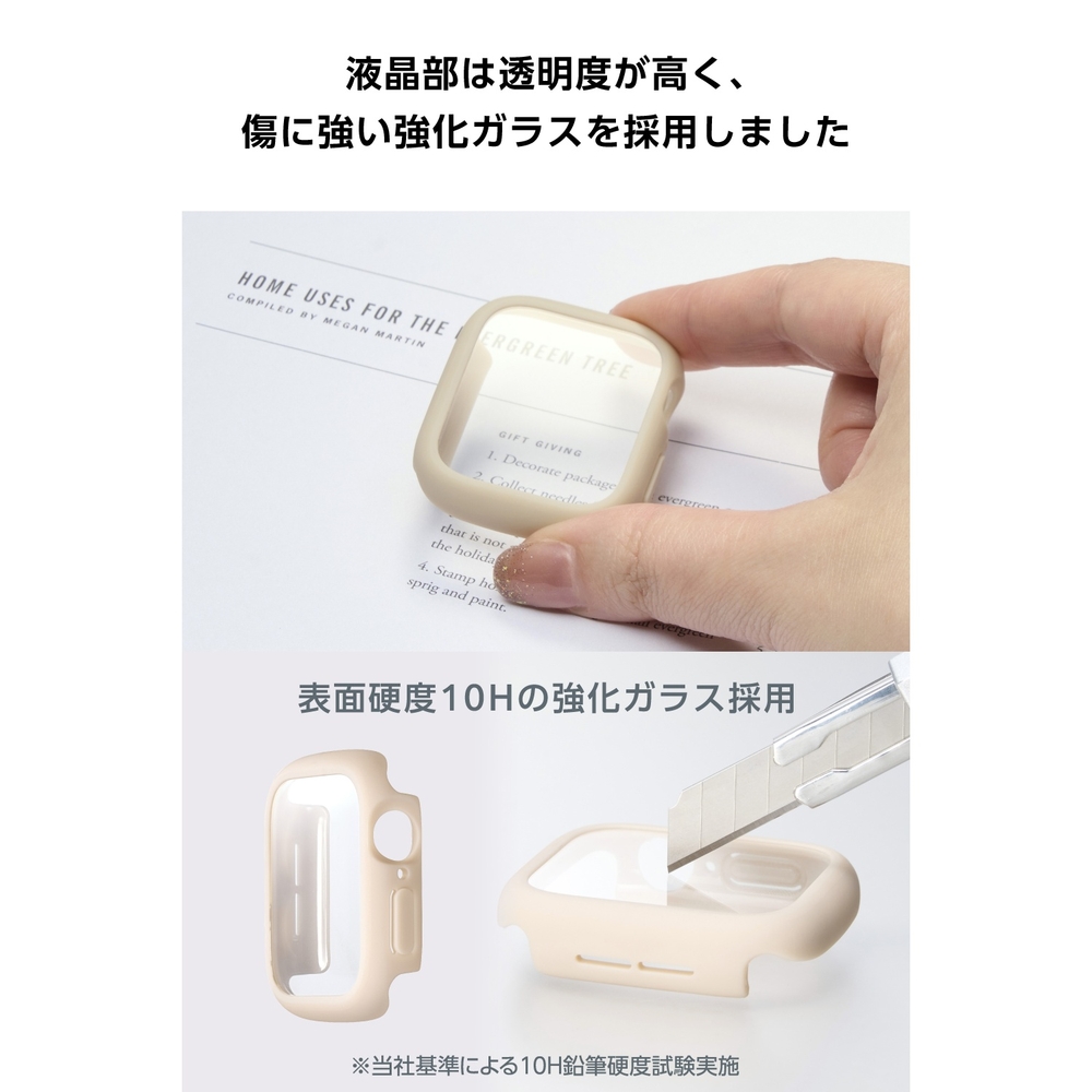 ■画面の視認性に優れる高透明なガラスと、しなやかで弾力性のあるTPU(熱可塑性ポリウレタン)樹脂で、端末を傷や汚れから守るApple Watch用TOUGH SLIM LITEケースです。 ■TPU(熱可塑性ポリウレタン)素材とガラスの2重構造で、Apple Watchの画面および側面部を保護します。 ■画面保護部には、透明度が高く、傷に強い強化ガラスを採用しています。 ■表面硬度10Hの強化ガラス採用により、保護ガラス表面の傷を防止します。 ■※当社基準による鉛筆硬度試験での実力値です。 ■指紋・皮脂汚れが付きにくく、残った場合でも簡単に拭き取れる指紋防止加工を施しています。 ■特殊な飛散防止設計により、万が一割れてしまった際にもガラス片が飛散することなく、高い安全性を実現しています。 ■耐久性に優れ、しなやかな弾力性のあるTPU(熱可塑性ポリウレタン)素材を使い、側面部を覆うように保護します。 ■バンドが装着されたままでも、ケースを簡単に着脱できます。 ■ケースをApple Watchに装着したままで画面の確認、本体の操作、各種ボタン操作、純正の磁気充電ケーブルへの設置が可能です。 ■MIL規格に準拠した1.22mからの落下テストをクリアしています(ただし、全ての状態において無破損・無故障を保証するものではありません)。