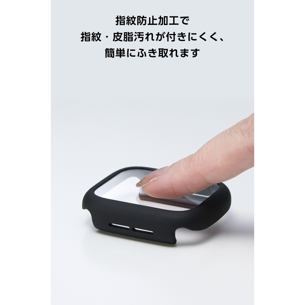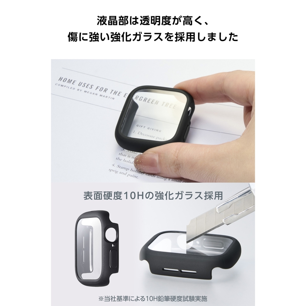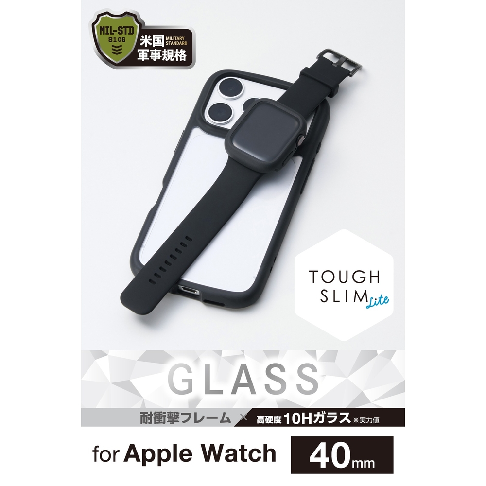■画面の視認性に優れる高透明なガラスと、しなやかで弾力性のあるTPU(熱可塑性ポリウレタン)樹脂で、端末を傷や汚れから守るApple Watch用TOUGH SLIM LITEケースです。 ■TPU(熱可塑性ポリウレタン)素材とガラスの2重構造で、Apple Watchの画面および側面部を保護します。 ■画面保護部には、透明度が高く、傷に強い強化ガラスを採用しています。 ■表面硬度10Hの強化ガラス採用により、保護ガラス表面の傷を防止します。 ■※当社基準による鉛筆硬度試験での実力値です。 ■指紋・皮脂汚れが付きにくく、残った場合でも簡単に拭き取れる指紋防止加工を施しています。 ■特殊な飛散防止設計により、万が一割れてしまった際にもガラス片が飛散することなく、高い安全性を実現しています。 ■耐久性に優れ、しなやかな弾力性のあるTPU(熱可塑性ポリウレタン)素材を使い、側面部を覆うように保護します。 ■バンドが装着されたままでも、ケースを簡単に着脱できます。 ■ケースをApple Watchに装着したままで画面の確認、本体の操作、各種ボタン操作、純正の磁気充電ケーブルへの設置が可能です。 ■MIL規格に準拠した1.22mからの落下テストをクリアしています(ただし、全ての状態において無破損・無故障を保証するものではありません)。