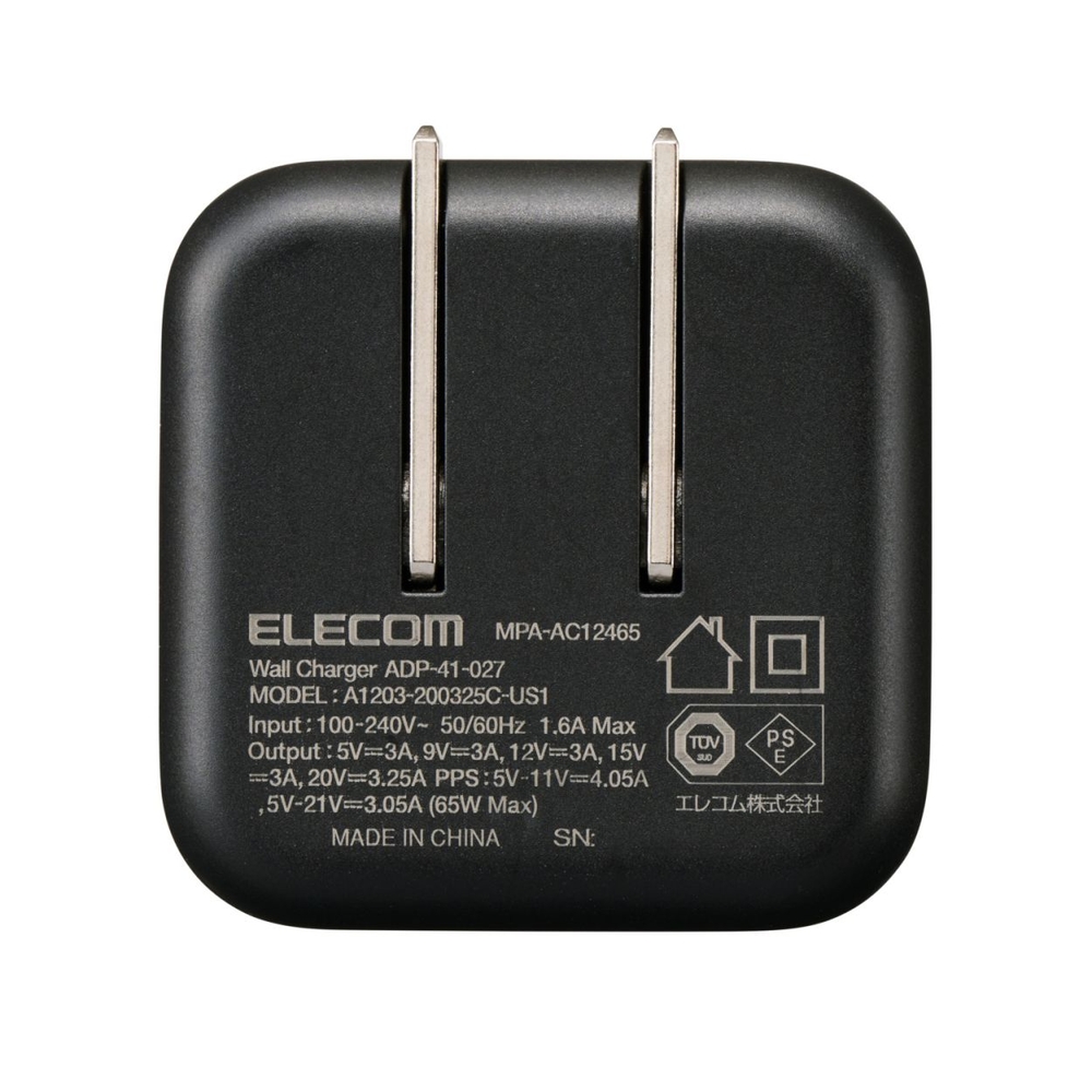 エレコム USB 充電器 65W PD PPS対応 1ポート USB-C GaN II 折りたたみプラグ PSE適合 MacBook iPad iPhone Switch 対応 ブラック MPA-AC12465BK