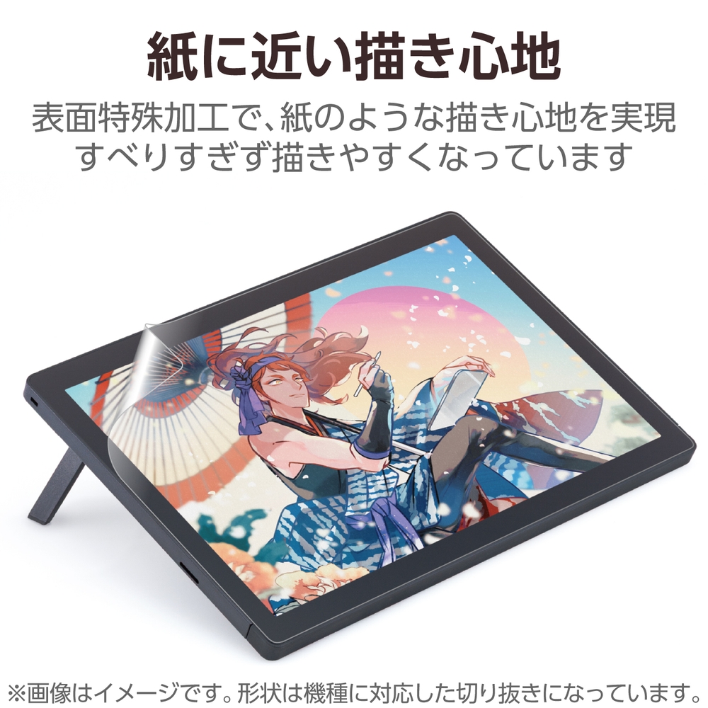 ■Wacom Cintiq16 (DTK168)対応の紙心地フィルムです。特殊表面形状デザインにより上質紙に鉛筆で描いたような描き心地を実現します。 ■ペン先が滑りすぎないため、イラストが描きやすいです。 ■画面を傷や汚れから守ります。 ■時間の経過とともに気泡が目立たなくなる、特殊吸着層を採用したエアーレス加工を施しています。 ■小さな気泡ができたときには、指などで押し出すことで気泡を抜くことができます。 ■指紋汚れを付きにくくする指紋防止コーティングを施しています。 ■鉛筆硬度3Hのハードコート加工により、フィルム表面の傷を防止します。 ■※当社基準による鉛筆硬度試験での実力値です。 ■貼り付け面にシリコン皮膜をコーティングし、接着剤や両面テープを使わずに貼り付け可能な自己吸着タイプです。貼りやすく、貼り直しも可能です。 ■端末の形状に合わせたサイズにカット済みなので、パッケージから取り出してすぐに使用可能です。 ■フィルムがキレイに貼れる、専用ヘラと、クリーニングクロス、ホコリ取りシールが付属しています。 ■自社環境認定基準を1つ以上満たし、『THINK ECOLOGY』マークを表示した製品です。 ■環境保全に取り組み、製品の包装容器が紙・ダンボール・ポリ袋のみで構成されている製品です。