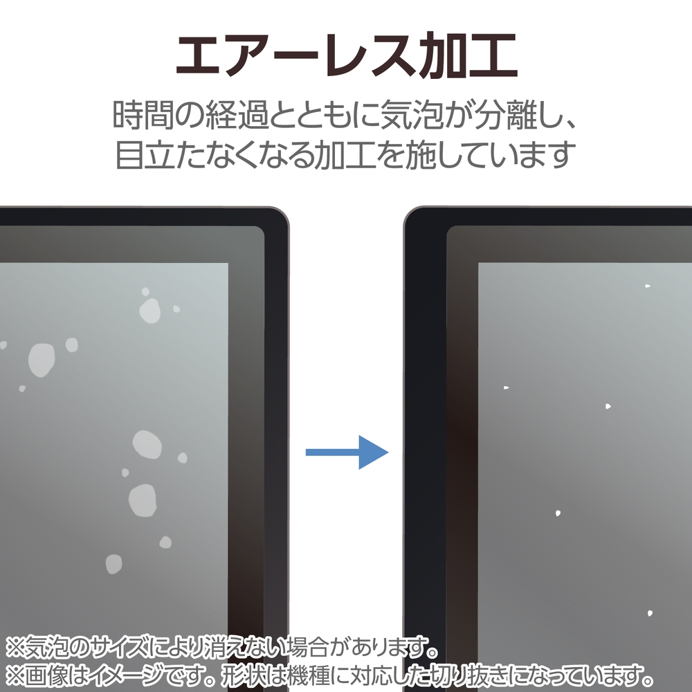■Wacom MovinkPad 11 (DTHA116CL0Z)対応の高精細フィルムです。摩擦を軽減した表面仕上げで、スムーズな描き心地を実現します。 ■ナノテクノロジーによる高精細な加工で光の映り込みを抑え、反射防止フィルム特有のチラツキを防ぐことで、画面が見やすくなっています。 ■画面を傷や汚れから守ります。 ■時間の経過とともに気泡が目立たなくなる、特殊吸着層を採用したエアーレス加工を施しています。 ■小さな気泡ができたときには、指などで押し出すことで気泡を抜くことができます。 ■指紋汚れを付きにくくする指紋防止コーティングを施しています。 ■硬度2Hのハードコート加工により、フィルム表面の傷を防止します。 ■※当社基準による鉛筆硬度試験での実力値です。 ■フィルムを貼ったままでもタッチスクリーン入力、本体操作ができます。 ■貼り付け面にシリコン皮膜をコーティングし、接着剤や両面テープを使わずに貼り付け可能な自己吸着タイプです。貼りやすく、貼り直しも可能です。 ■端末の形状に合わせたサイズにカット済みなので、パッケージから取り出してすぐに使用可能です。 ■フィルムがキレイに貼れる、専用ヘラと、クリーニングクロス、ホコリ取りシールが付属しています。 ■自社環境認定基準を1つ以上満たし、『THINK ECOLOGY』マークを表示した製品です。 ■環境保全に取り組み、製品の包装容器が紙・ダンボール・ポリ袋のみで構成されている製品です。