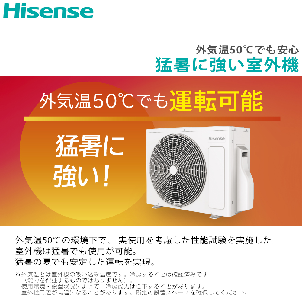 ●外気温50℃でも安心猛暑に強い室外機