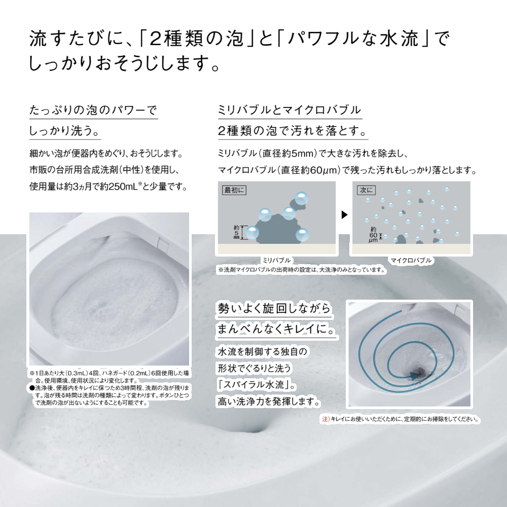 ●流すたび、便器の中を自動で洗い流す“全自動おそうじ”トイレ