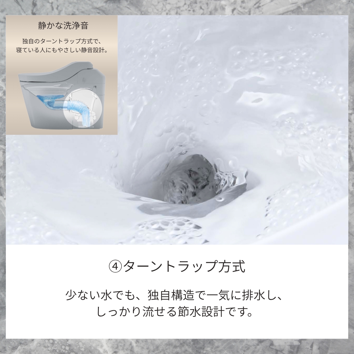 旋回水流で便器内をまんべんなく洗い流します。