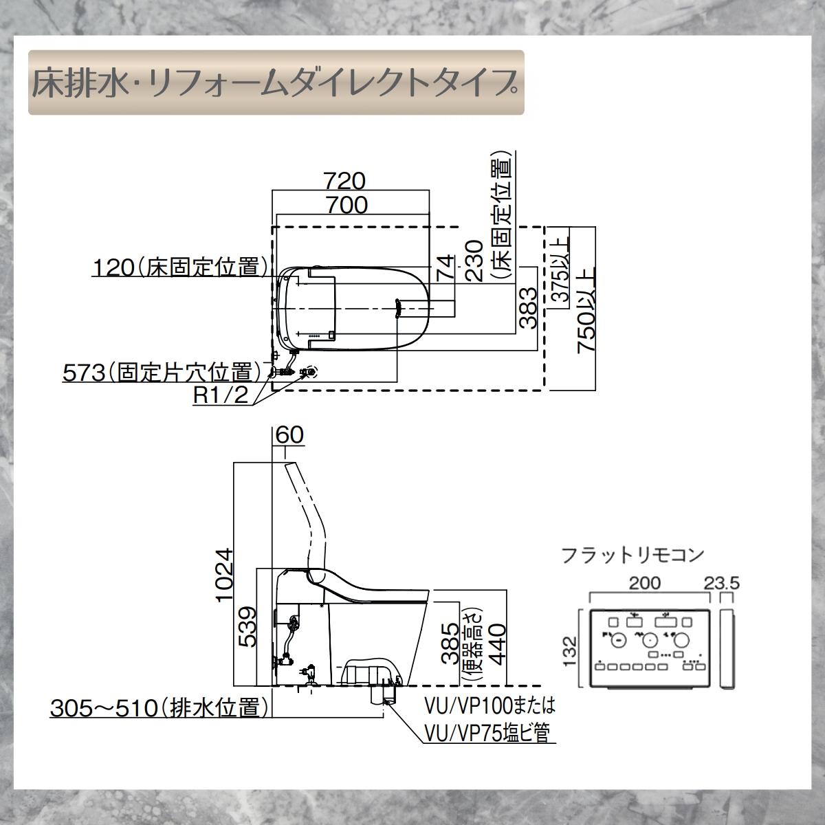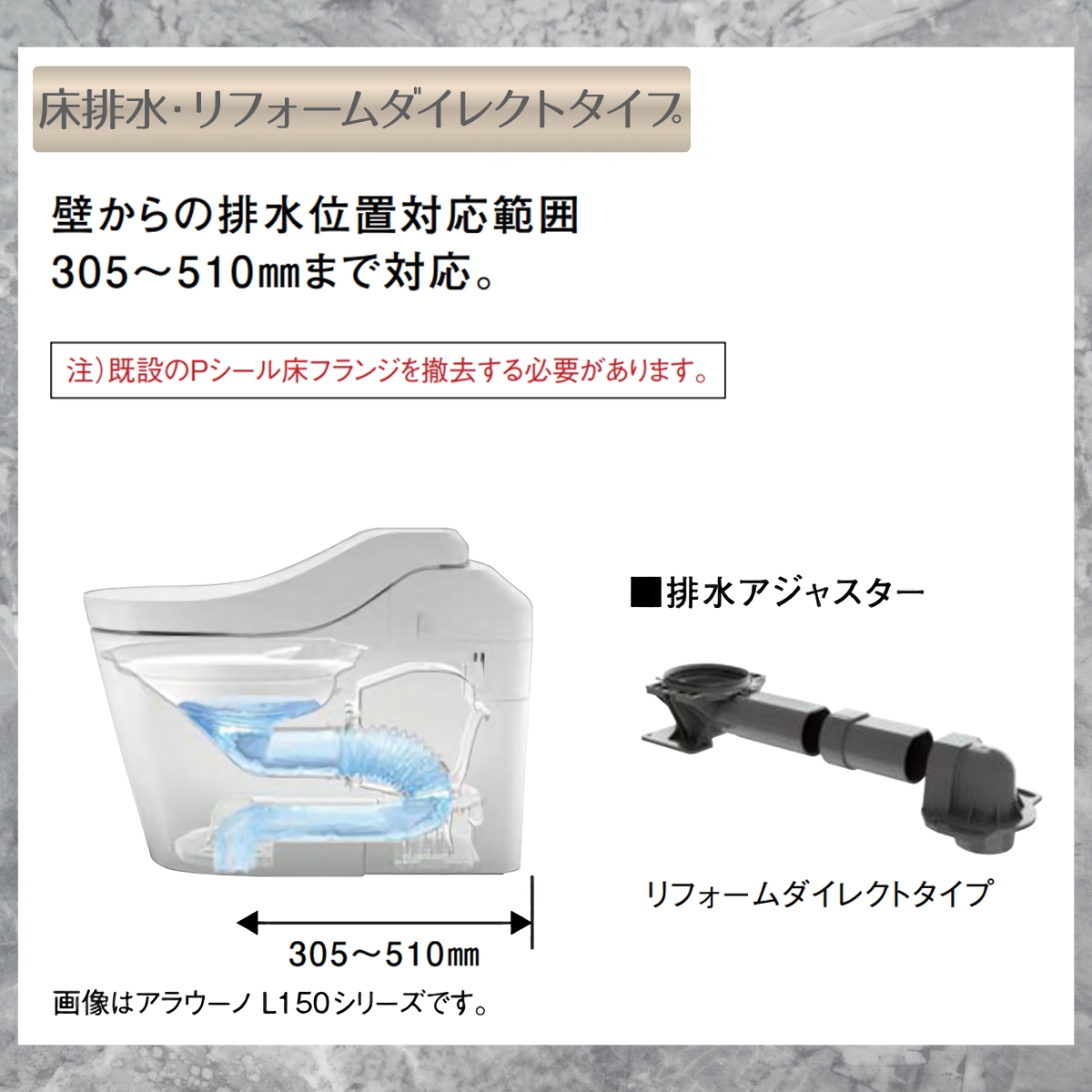 ◆本商品は床排水タイプです(排水芯305~510mm対応)