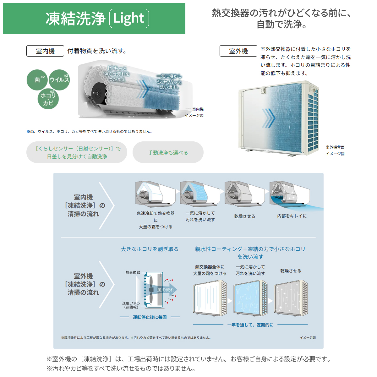 ■室内機も室外機も、自動で熱交換器を『凍結洗浄Light』